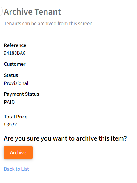 Once you have found the archived record in the list, click the 3 dots and select "Add as tenant". You can then remove the "View archived records" filter and the tenant will appear in your main list view.