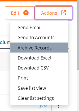 To archive multiple records, simply select the Actions Button and then select Archive Records