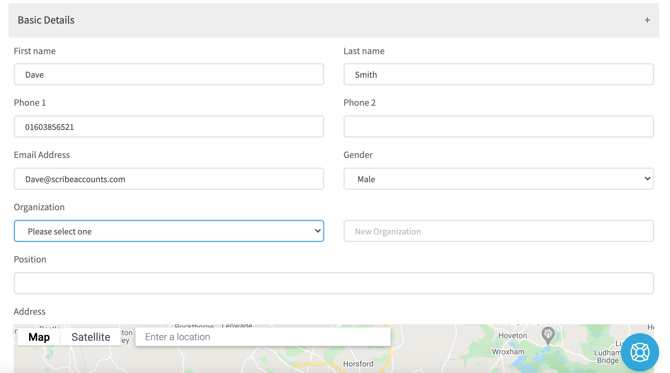 Each contact can be created from within the CRM menu option via 'Add Contact' or added whilst entering a transaction.