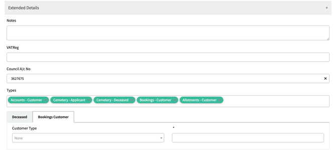 Contacts here will be shared across Accounts, Allotments, Bookings and Cemetery, showing only the relevant contacts for the app.