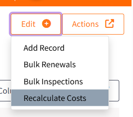 - Select the checkbox next to the individual records you wish to recalculate. Alternatively, select the first square box in the grey header to select all records at once.