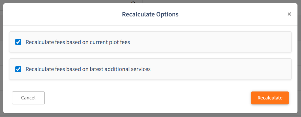 Tick this if you've updated plot rental fees for the new year — it ensures the new tenancy reflects the updated charges. - Recalculate based on latest additional services