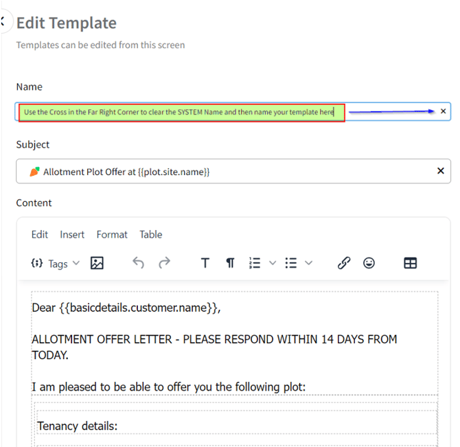 (Note - System templates will need to be saved with a new name and can NOT be overwritten)