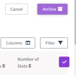 - Tick the checkboxes next to the records you wish to archive. To select all filtered records, tick the top checkbox next to "Number of slots".