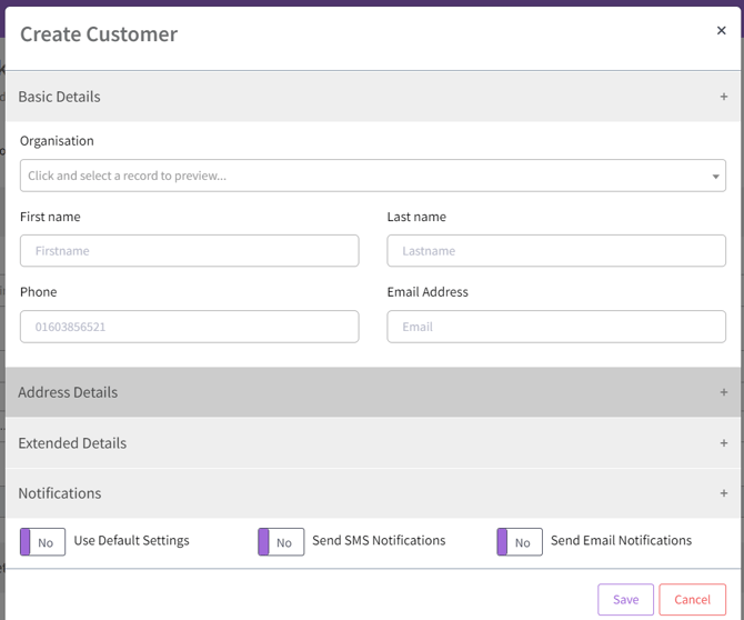 *Please note, new customers booking online via the webpage will automatically be allocated the notification setting 'Use Default Settings'.