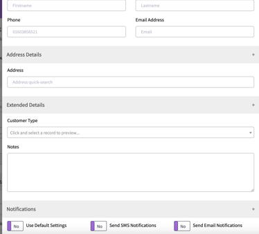 A window will pop up allowing you to enter the customer's details.
