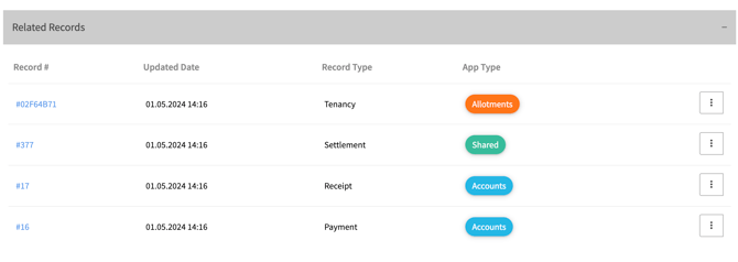 The related records for the Invoice, Payment and Receipt will be updated to link all transactions.