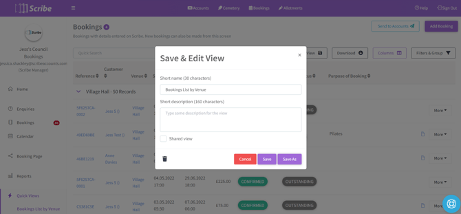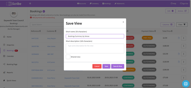 Once in the selected View, click onto the "Save View" and the "Save & Edit View" box will open allowing you to rename or delete the view if no longer required.