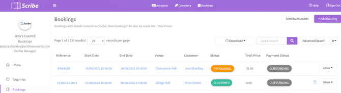 All record lists across Scribe Accounts, Cemetery and Bookings now have the same functionality to search and filter records in two different ways.
