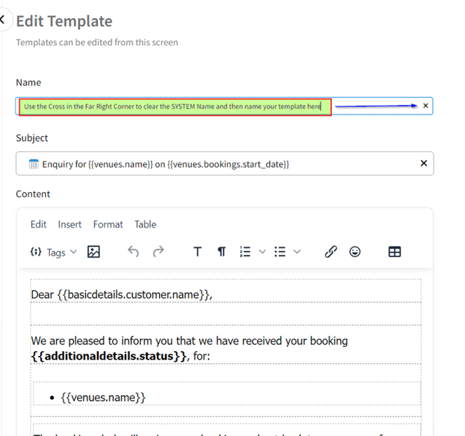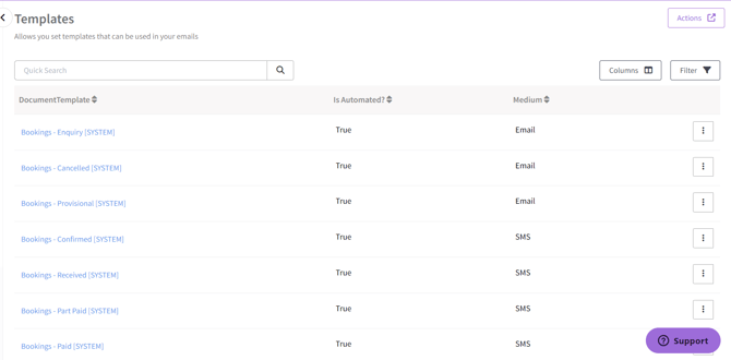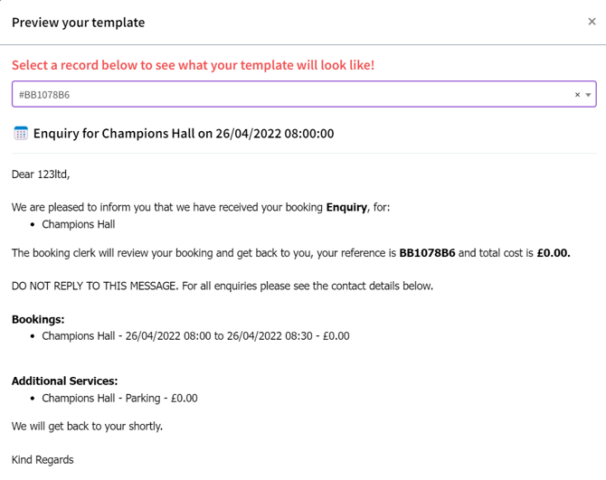 Note - Unlike Accounts, Bookings emails are generated AUTOMATICALLY, you do not get the option to select a nominated template. Customising your own template will automatically set the new template to default. To restore the system defaults you will need to delete your customised one or start the edit process again.
