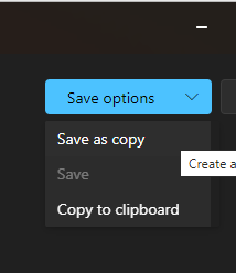 From Edit mode, select Save options in the top right corner of the screen and then select "Save as copy"