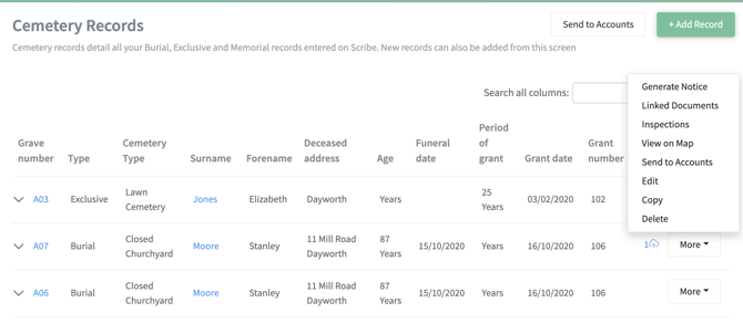 In Scribe these can be attached to the grave record so you can view them easily. You may also wish to take a photo of every new memorial, as confirmation of the detail you have entered and the condition when first erected.