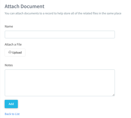 From the 'Attach a document' screen you can the add in a name for the document and click on upload to attach the required file. Notes can also be added - click on 'Add' to complete.