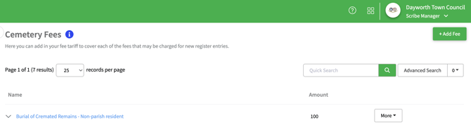 Here, we'll guide you through the process of adding your fee tariff for your cemetery within Scribe.