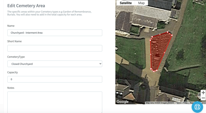 You are able to mark out a cemetery area on the map which will make it easier to add plots to the cemetery.